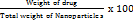 Entrapment efficiency was estimated by the amount of unentrapped drug in the supernatant after centrifugation. Drug content was determined using High-Performance Liquid Chromatography (HPLC) with a UV detector at 370 and 210 nm according to previously described procedures [14, 15]. The drug entrapment efficiency (EE), and drug content (DC) were calculated using the formulae below.