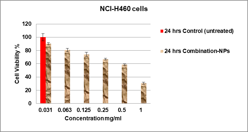 Fig. 4: Cytotoxicity effects of (Qu-Cis)-NPs in NCI-H460 cells after 24 h of incubation. Data expressed as mean±SD, n=3