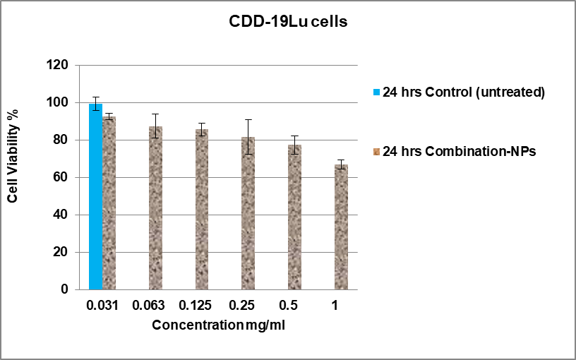 Fig. 6: Cytotoxicity effects of (Qu-Cis)-NPs in CDD-19Lu cells after 24 h of incubation. Data expressed as mean±SD, n=3