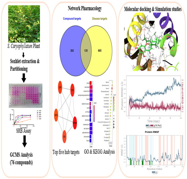 Keywords: Syzygium caryophyllatum, GC-MS analysis, SRB assay, Network pharmacology, Molecular docking