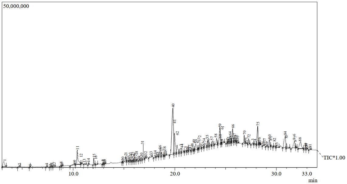 Fig. 3: GCMS Chromatogram of S. caryophyllatum leaf extract