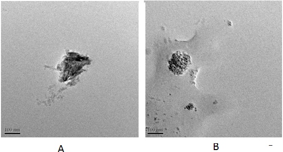 Fig. 4: TEM image of A. plain NS B. Curcumin loaded NS complexes