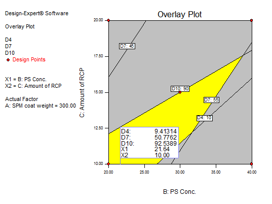 A: SPM coat weight (200 mg) B: PS conc. (69.74 mg) C: Amount of Eudragit S 100 (19.72 mg) |