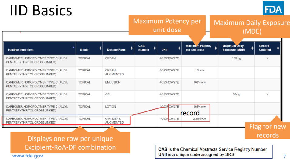 Fig. 2: FDA inactive ingredient database web page [48]