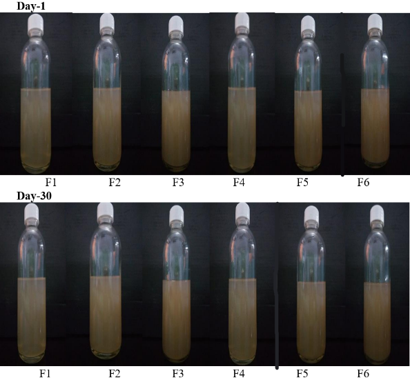Fig. 3: Preparation of suspension on day one and storage up to day 30