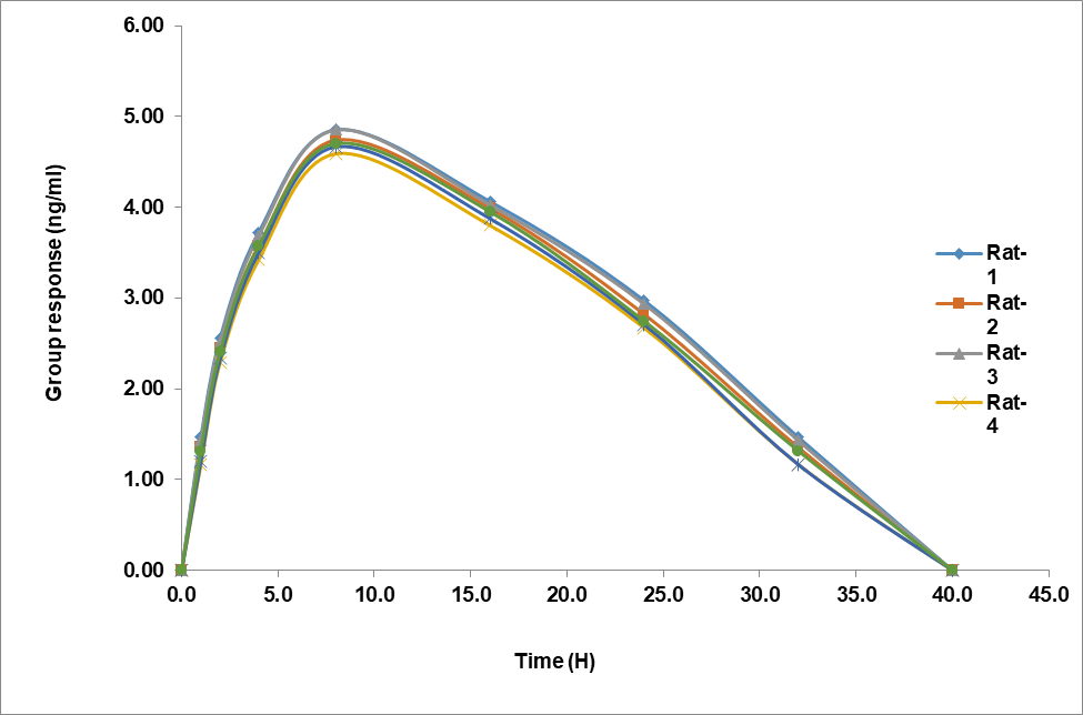 For in vivo pharmacokinetic studies, 6 healthy white New Zealand rats (app. 250 g) were obtained from Biological E Limited, Hyderabad, India. The protocol of animal study was approved by institute of animal ethics committee (Reg. No: 1074/PO/Re/S/22/CPCSEA). The animals were housed in identical laboratory circumstances, with a temperature of 20-26 °C and a humidity of 50-60%.