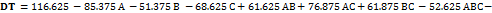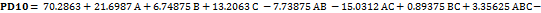The adopted full factorial Design experimental data was run on the experiment's Design (DOE) software to understand the impact of each independent superdisintegrant and the interaction of each other at the level of 0 and 5 % were evaluated. WT, DT, PD10 and dissolution efficiency at 10 min intervals are the four CQAs that were chosen for the investigation. The independent variables were named SSS (A), psyllium husk (B) and SSG (C). The polynomial equations were written as equations no 1, 2, 3 and 4