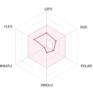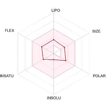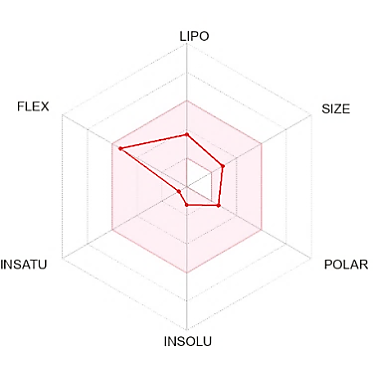 The suitable physicochemical for oral bioavailability followed to SwissADME, which uses 6 physicochemical properties, are taken into account: lipophilicity, size, polarity, solubility, flexibility, and saturation. The pink area in the oral bioavailability chart (fig. 8 & table 5) represents the optimal range for each property, lipophilicity: XLogP3 between −0.7 and+5.0, size: MW between 150 and 500 g/mol, polarity: Topological Polar Surface Area (TPSA) between 20 and 130Å, solubility: log S not higher than 6, saturation: fraction of carbons in the sp3 hybridization not less than 0.25, and flexibility: no more than 9 rotatable bonds [30].