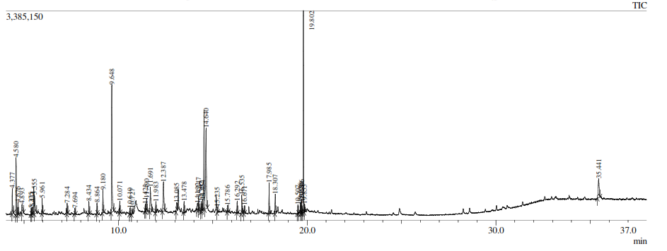 Fig. 2: GC-MS chromatogram of nanoherbal senduduk bulu