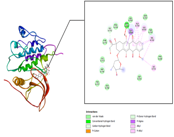| Doxorubicin | MET769 | GLY772, LEU694, ALA719, LEU820, VAL702, LYS721 |