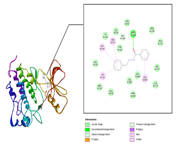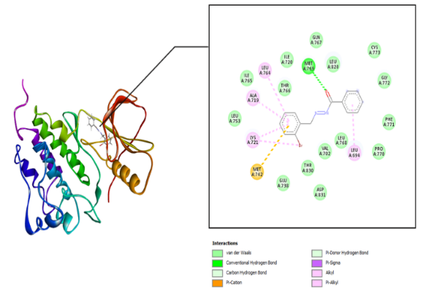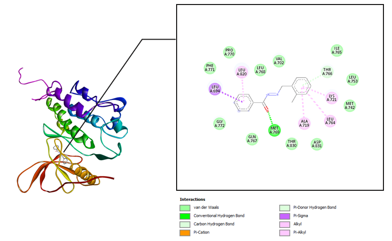 | Benzylidene benzohydrazide (L1) | MET769 | LYS721, LEU764, ALA719, LEU768, LEU694 |