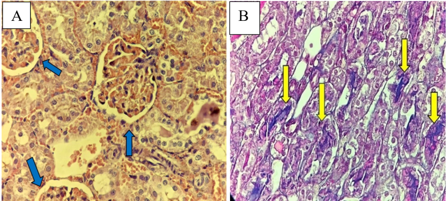 The renal tissue section was fixed within 10 % formalin, alcohol-based dehydration, cleaned with xylene, and then submerged in paraffin. The kidney tissues were fixed in paraffin and then sectioned into slices 5 μm thick. After staining these portions with hematoxylin, eosin, and trichrome [34].
