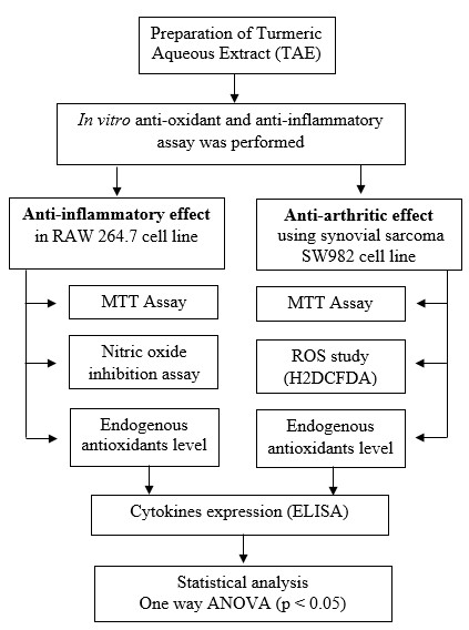 Fig. 1: Experimental workflow for assessing antioxidant, anti-inflammatory, and anti-arthritic effects of TAE