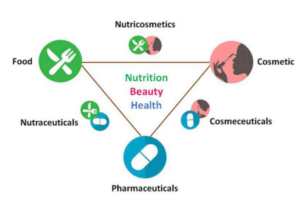 Over time, other terms such as "Nutraceuticals" and "Nutricosmetics" have emerged (fig. 1). DeFelice et al. gives a definition for nutraceuticals as "any food or part of a food that provides medical or health benefits" [16]. The benefits of components generated from food and their effects on human health were discussed in the 1980s, when this idea began to garner greater attention [15-17]. According to Pearson (2018), these active ingredients were thought to be crucial for both the skin's anti-aging benefits and protection against injury. On the other hand, nutricosmetics, commonly known as "beauty pills", "beauty from within", or "oral cosmetics" is defined as "the consumption of food or oral supplements to produce an appearance benefit" [15-18].