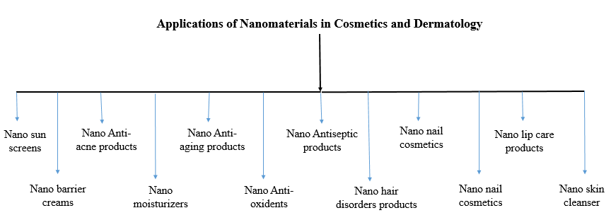 Fig. 4: Different applications of nanomaterials in cosmetics and dermatology