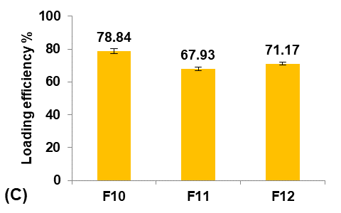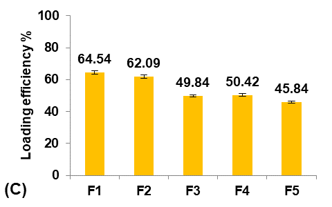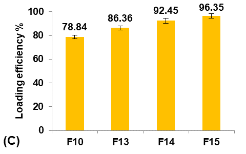 The Terconazole content was determined from the standard calibration curve. The loading efficiency of Terconazole was estimated using the following equation [8, 18]: