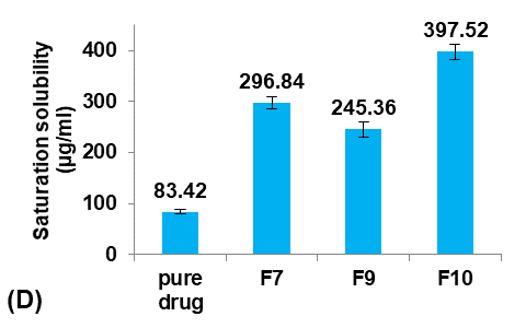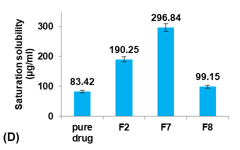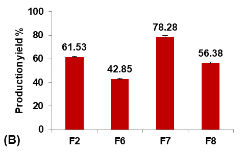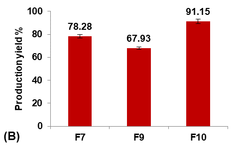 Formula F7, with lower particle size, higher production yield and loading efficiency, and best solubility improvement, was selected for further optimization studies.