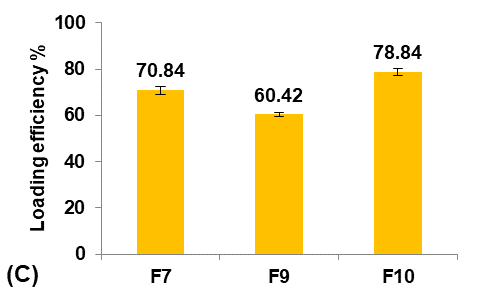 Different glycerol percentages of (5, 10, and 20%v/v ethanol) were used to prepare formulas F9, F7, and F10, respectively, to study their effect on the Terconazole-loaded micro-sponges, as shown in fig. 3.