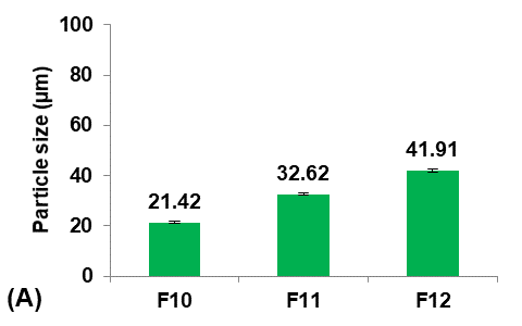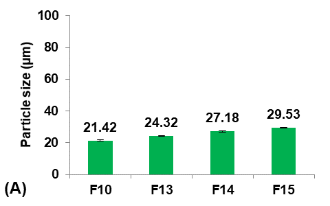 It was observed that decreasing the concentration of Eudragit-L100 led to a significant decrease (p<0.05) in the average particle size of micro-sponges. This occurred because the proportion of polymer available per micro-sponges was decreased, and thus a smaller particle size was obtained. This provides an extensive surface area for high entrapment [32].
