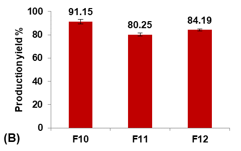Formula F10, with lower particle size, higher production yield and loading efficiency, and best solubility improvement, was selected for further optimization studies.