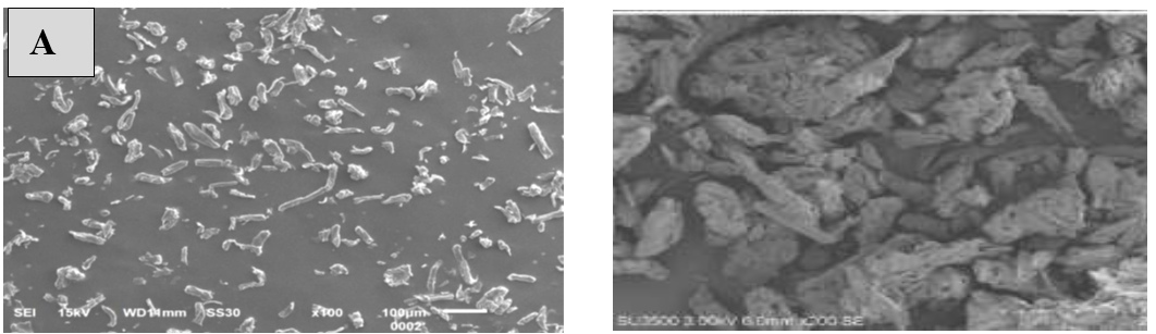 Yugatama et al. (2012) reported that the particle size of Avicel pH 102 ranges from 13.33 to 200 μm, with irregular shapes, uneven surface textures, and obtuse angles [31]. The following is a comparison of morphological images from several literatures: