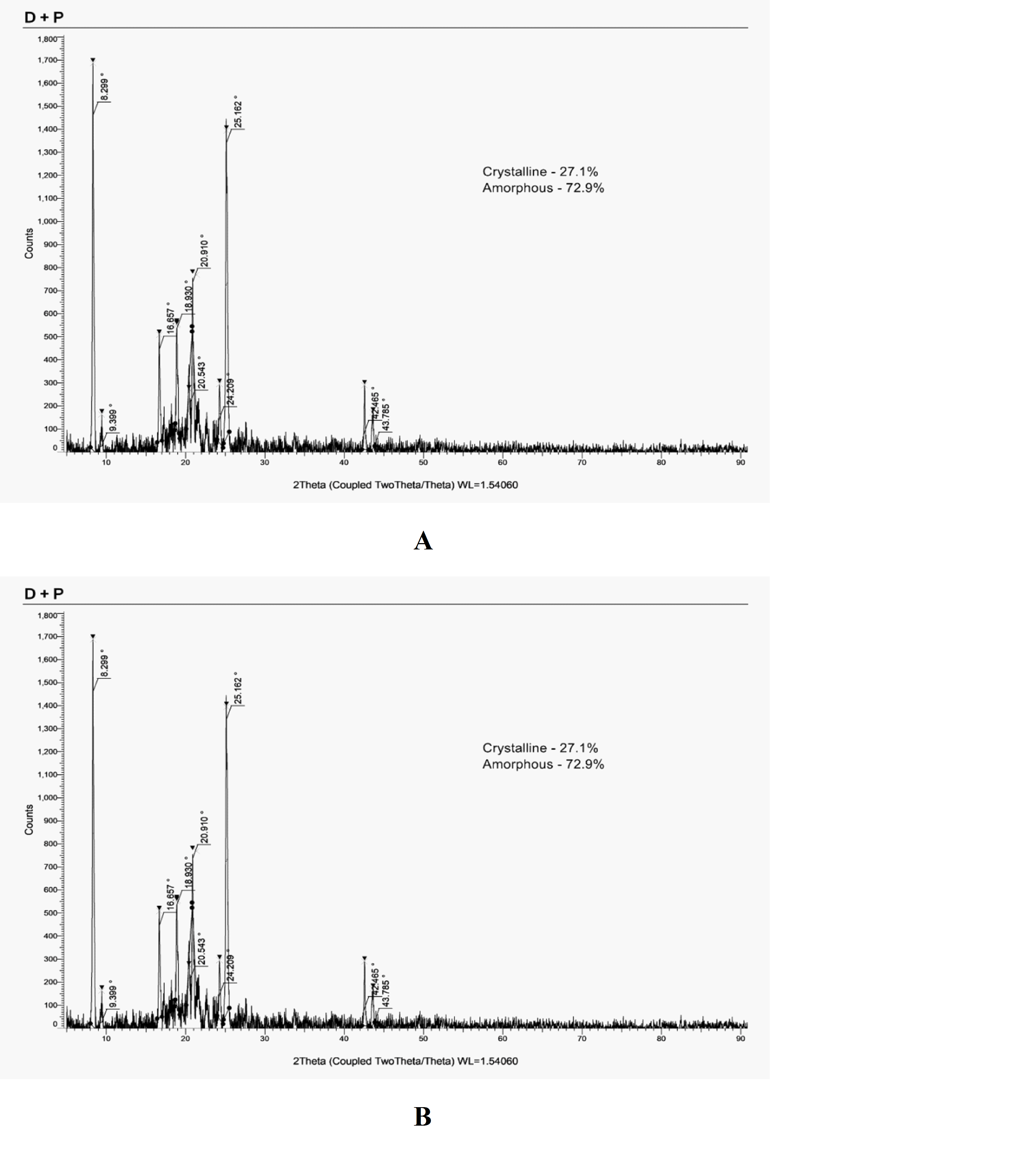 Fig. 3A: PXRD of fluvoxamine maleate, B: PXRD of the physical mixture