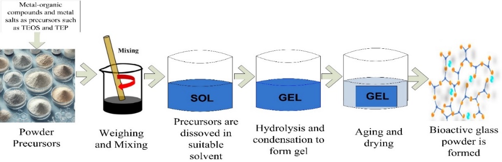 Fig. 2: Essential stages of the sol-gel process for synthesizing bioglass