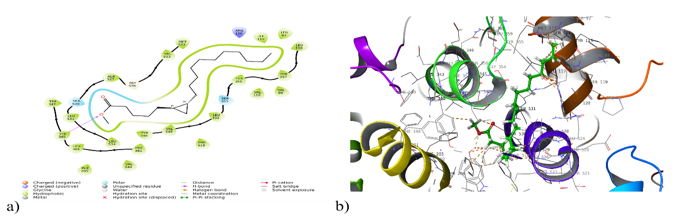 In a previous study conducted in our laboratory, the phytochemical constituents of Z. officinalis were identified using GC-MS analysis from both aqueous and methanolic extracts. These extracts demonstrated significant in vitro anti-inflammatory activity in comparison to the standard drug, diclofenac [6]. Based on this, 24 bioactive compounds were selected from both extracts for in silico studies to identify potential inhibitors of inflammation. Ligands were chosen based on GC-MS data, and their structures and SMILES codes were generated using ChemDraw software and the PubChem database. The 3D structures of these ligands were created and underwent energy minimization using the LigPrep module. Structural optimization was performed to achieve the global minimum configuration [25].