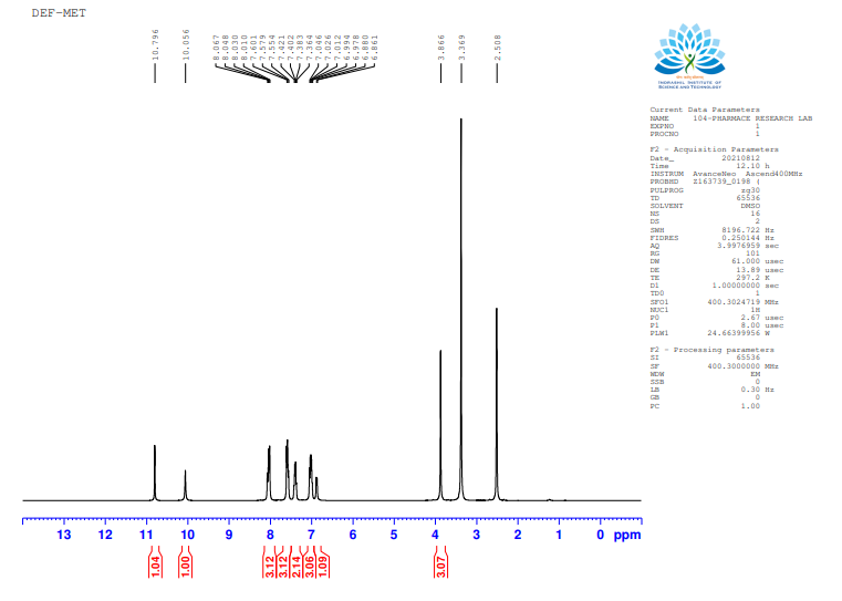 Fig. 4: NMR spectra for deferasirox methyl ester