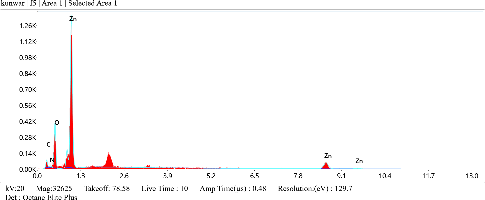 The Energy-dispersive X-ray spectroscopy was examined at 1 nm resolution with 15 kV [16].