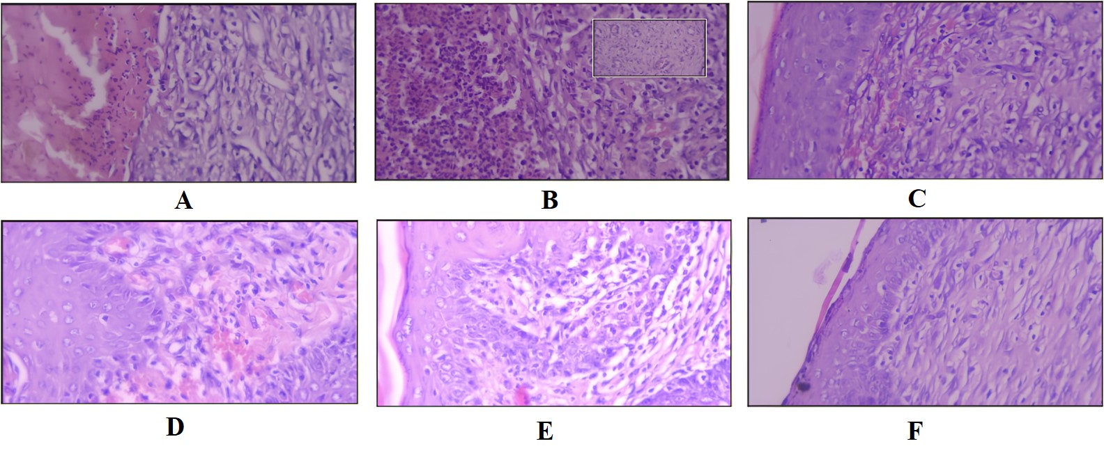 Fixed tissues were further embedded in paraffin, sectioned at the thickness of 5µm using a microtome, then stained with hematoxylin and eosin. The sections were examined under a light microscope for the evaluation of histopathological parameters. Three parameters were selected those are the number of inflammatory cells (represented by neutrophils), the epithelium generation, and the number of vessels generated (angiogenesis).