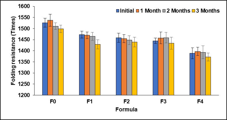Fig. 3: Folding resistance of TTO patch for 3 mo storage (Data were expressed in mean±SD, n=3)