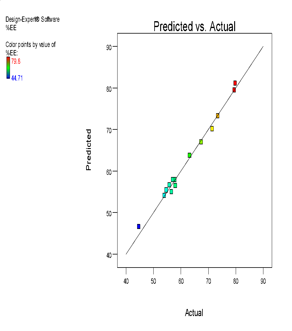 For optimization of liposomal formulation, a box-behnken design was implemented on Design Expert ® (Version 10, Stat-Ease Inc. Minneapolis, MN) software. Liposomes containing Ocimum tenuifloram were formulated using ethanol injection method. A three-level and three-factor Box-Behnken Design, was applied with Design Experts software that suggested 17 experimental runs [33]. Seventeen formulations of herbal liposomes of Ocimum tenuifloram were developed where on the basis of literature. There were three independent factors were fixed, namely, the soya lecithin (X1), cholesterol (X2) and ethanol (X3) as showed in table 2.