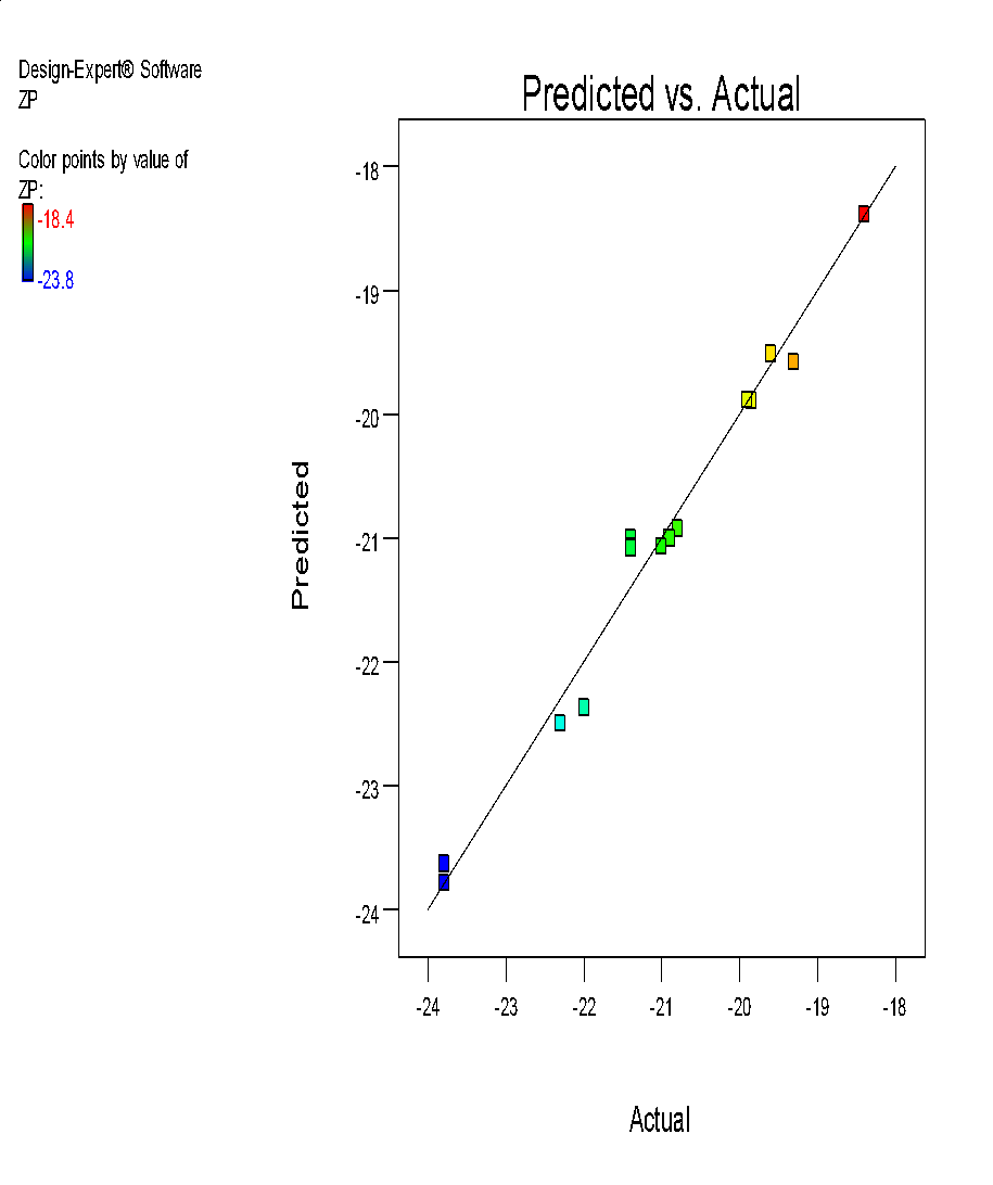 By measuring the zeta potential, we can easily find out the surface charge of particle colloidal systems and repulsion energies between particles that affects its physical stability. After increasing the stability of liposomes, there was an increase in repulsion of particles. If the value of ZP lowers, then it means in order minimizing the energy of liposome particles and the aggregation of mixture forms attraction overcomes repulsion. Acceptable values of zeta potential were considered between lower than-30mV and higher than+30mV. This range was suitable for colloidal stability of liposomes. The liposome formulation loaded with plant extract represents zeta potential values was in the range of-22±0.46 mV [44-46].