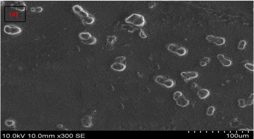 On the basis of appearance of liposomes, the size was observed using SEM (JSM 6100, Jeol, Ltd. Japan) microscopy. The appearance of liposomes influences its drug distribution, targeting efficiency and surface ratio. The liposomes were observed under 4.0K and 2.0K magnifications to observe the shape of sphere and size distribution of liposome particles.
