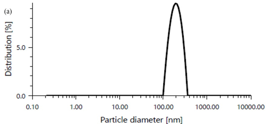 Particle size distribution is the percentage of particles into a certain size. These are also known as fractions or size classes. By calculated the particle size distribution, visualization of liposome vesicles at a specific size was examined. The zeta potential and vesicle size of the liposomes were optimized by using its suspension on Dynamic light scattering (DLS). It was mixed into millipore water and the whole program was set at an angle of 90°. The size of particles in liposome preparation was determined using Polydispersity index (PDI), which denotes the thickness of particle size. It also determines zeta potential. All formulations were observed by particle size analyzer instrument (Litesizer, Anton Paar, Austria) into different batches [35].