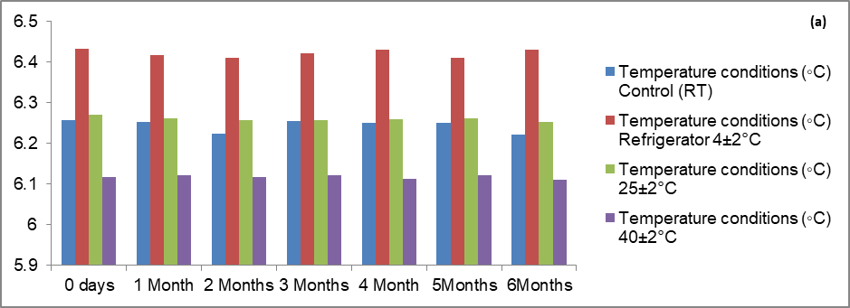 By using a digital pH meter (OHPL-OP-024, Ohaaus, USA), the pH of gel formulation was determined. Weighed one g herbal lipogel formulation and dissolved it into 100 ml of de-mineralized water, then stored it for one hour. Then, note down the pH of the formulation in triplicate. Before performing this experiment, the device was calibrated using a standard solution of buffer with pH 6.4. The acceptable range of pH should be between 6 to7 because it is mildly acidic and causes no irritation on skin [38].