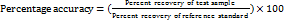 The degree of similarity between the results observed and the results expected to be a conventional true value characterizes the accuracy of an analytical HPLC technique that has been designed. The recovery samples' results, in which a known concentration of ERT at 3 different concentrations (80%, 100%, and 120%), were used to assess the accuracy of the suggested approach. All the samples are injected in triplicate. The % accuracy was calculated using equation (1).