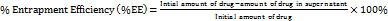 Determination of % entrapment efficiency (% EE) and % drug loading (% DL)