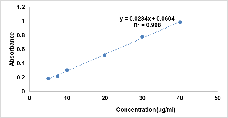 The width of unimodal size distributions is measured by the PDI. Further, PDI was measured and presented in table 2,3 and fig. 5 A-B. PDI ranged from 0.454±0.004 to 0.728±0.012. A homogeneous dispersion shows a value of 0, whereas a completely heterogeneous polydisperse population is indicated by a value of 1. A PDI that is considered acceptable should be less than 0.5. The produced vesicles' polydispersity indices were often minimal, as can be seen from the data, indicating strong homogeneity and a narrow size distribution [23].