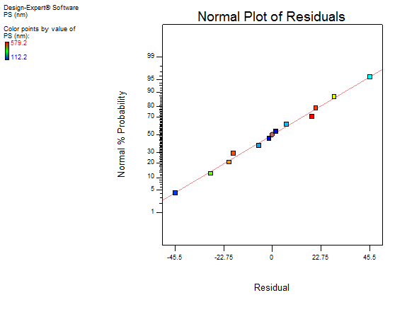 It is noticeable that both PC amount (X1) and SAA type (X2), significantly influenced the PS of the vesicles with p values of 0.0013 and (p<0.0001), respectively.