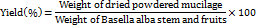The percentage yield of the Basella alba mucilage after extraction was calculated using the formula: