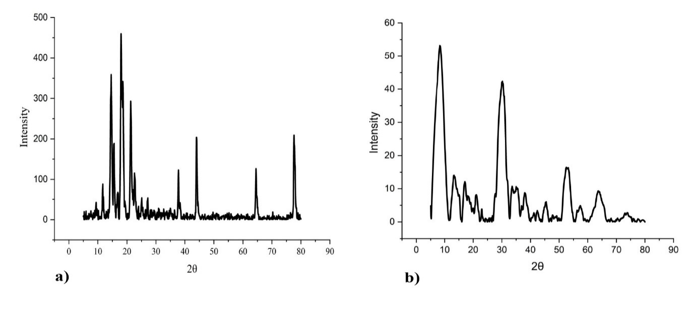 Fig. 13: XRD graphs for pure abiraterone acetate (a), optimized ASNPs (b)
