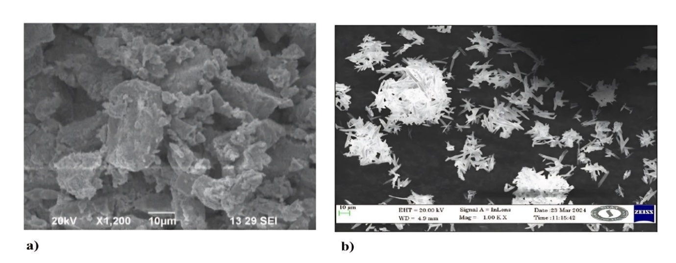 Fig. 17: SEM graphs (a) pure abiraterone acetate and (b) optimized ASNPs