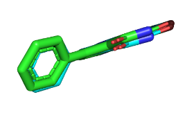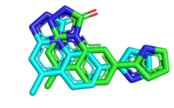 Fig. 2: Validation of native ligand (green) and ligand docking (blue) CHK1