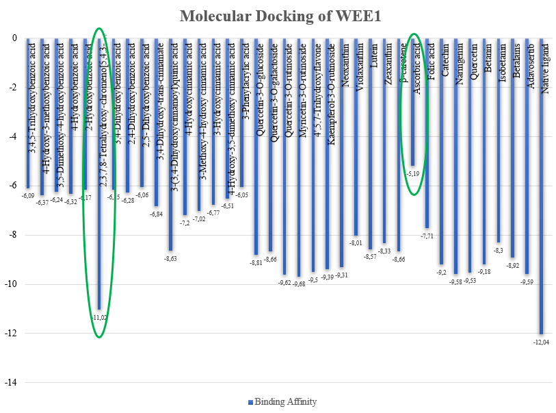 Fig. 5: Binding affinity values from the active compound of red spinach (Amaranthus gangeticus) from WEE1