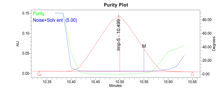 Andrews RW, Richardson H. Effect of spectral resolution detector linearity and chromatographic resolution on peak purity calculations. J Chromatogr A. 1994;683(1):3-8. doi: 10.1016/S0021-9673(94)89096-X.