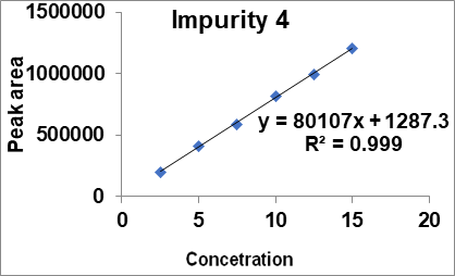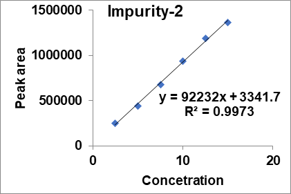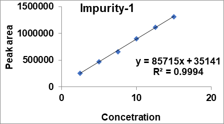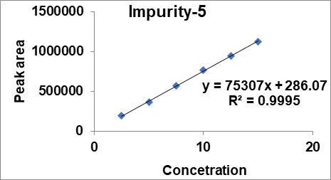 A 100 ml volumetric flask was filled with 5 mg of Imp-1, Imp-2, Imp-4, and Imp-5, which had been precisely weighed. After properly dissolving in acetonitrile, sonicate for approximately fifteen minutes.