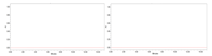 A Diluent solution was made using the revised technique and added to the chromatographic apparatus (fig. 13). The retention periods of the active and impurity peaks were not interfering because of the diluents.