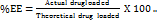 EE was evaluated through the use of the ultracentrifugation method. A precisely weighed amount of the phytosome complex (10 mg) was dissolved and diluted in methanol. The solution was subsequently ultra-centrifuged at 15,000 rpm for 15 min at room temperature, and the supernatants were left undisturbed for 20 min [47]. The quercetin concentration in the solution was assessed by measuring absorbance at 370 nanometers with a Ultra Violet (UV)-visible spectrophotometer. The EE was calculated by determining the amount of quercetin in the total yield. The percentage of entrapment efficiency was calculated using the formula provided below.